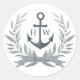 Élevez vos faveurs de mariage avec ces stickers de charme sur le thème nautique, avec une ancre à l'intérieur d'un héraut orné de couleurs côtières. Personnalisé avec les initiales de la mariée et du marié de chaque côté de l'ancre et une bannière déclarant "Merci", cet autocollant ajoute une touche d'élégance maritime à votre papeterie mariage.