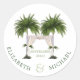 Un autocollant juif "Under the Chuppah" et Palm Trees élégant mariage ou fiançailles. Deux élégants palmiers font partie de la canopée Ove the Bride et Grooms noms et date mariage. Design élégant moderne et mariage.