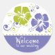 Bienvenue à Nos autocollants de mariage. Idéal pour vos sacs cadeaux d'hôtes. Mariage Mariage de fleurs violet et citron vert