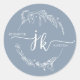 Sticker rond Mariage classique à monogramme bleu poussiéreux à couronne florale minimale