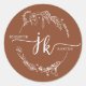 Sticker rond Mariage classique en terre cuite monogramme à couronne florale minimale