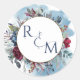 Sticker Rond Mariage Monogramme Enveloppe Sceau Bleu Bourgogne