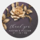 Express votre gratitude dans le style avec ces Stickers de Merci Mariage de la 'Collection Théâtrale Reverie'. Orné d'arrière - plans enchanteurs (bleu, violet royal, vert, brun rouille, noir fusain et rouge de théâtre), chaque autocollant est décoré d'un rose métallique en cuivre doré et d'un feuillage, montrant l'élégance de votre thème mariage. Personnalisés avec le nom et la date de la mariée et du marié, ces autocollants ajoutent une touche finale à vos notes de remerciement sincères.