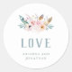 Ces stickers mariages tendance et rustiques sont ornés d'un bouquet de saumons boho rempli de fleurs et de plumes d'aquarelle.