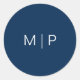Sticker Rond Mariage simple de Monogramme bleu marine moderne
