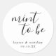 Des autocollants chic et moderne pour le mariage avec un design minimal avec le message "Mint To Be" dans une police manuscrite et vos noms et la date ci-dessous, en noir, sur un arrière - plan blanc. Les polices et les couleurs arrière - plans peuvent être changées en n'importe quelle couleur. Ces stickers élégants et élégants sont parfaits pour le couple minimaliste et apportent une touche personnelle à vos faveurs.