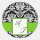 Sticker Rond Mariage vert Monogramme Damask Seal