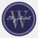 Nom rond bleu marine Phoques d'enveloppe de monogramme, Favor Tags, Stickers ========= Customisez ceci avec votre monogramme, nom ou autre texte. Vous pouvez également modifier la police de texte, ajuster les tailles et les couleurs de police de texte, déplacer le texte, etc. 2013 © Embosser Tous droits réservés
