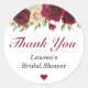 Autocollants de remerciement ronds personnalisés marsala. Entièrement personnalisable - peut être utilisé pour un mariage, une baby shower, une fête de sprinkles, un anniversaire ou une autre occasion. Conçu pour correspondre à notre collection florale Marsala Bordeaux. Pour des articles assortis, visitez www.zazzle.com/violinevents