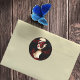 Une femme aux cheveux noirs avec un masque masqué papillon rouge avec des papillons rouges tout autour d'elle, sur fond de noir