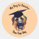 Mon chien est plus intelligent que votre chien avec un mastife américain doux portant une casquette de graduation drôle autocollant. Cliquez sur Personnaliser pour modifier la taille, le style et la couleur de la police. Cette image est disponible sur de nombreux produits dans mon magasin. Visitez Smilin' Eyes Treasures pour plus de cartes et cadeaux de fleurs, d'animaux et de nature.