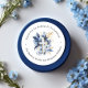 Autocollant moderne et élégant Merci Baptême. L'autocollant présente un arrangement floral bleu marine et or avec une croix bleu et or assorties, le tout dressé contre un arrière - plan blanc immaculé. Personnalisez davantage avec votre message de remerciement.