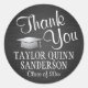 Ajoutez une touche élégante et personnalisée à la remise des diplômes de l'université ou du secondaire, merci les cartes et les faveurs de fête avec des autocollants ronds noirs, blancs et argentés / scellés d'enveloppe. Tout le texte est simple à customiser. Le design comprend un arrière - plan brossé noir, un casquette en carton de mortier en acier inoxydable et une typographie de script de style calligraphie moderne. Veuillez noter que l'argent est imprimé en couleur et non en papier métallique. Félicitations au diplômé !