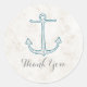 Parfait pour un mariage à thème nautique, ce Stickers Mariage d'Ancre rustique Merci avec une ancre de bateau bleu foncé sur un look arrière - plan marbré beige clair. Ces autocollants classiques et simples sont faciles à customiser avec vos détails mariages. Pour plus d'options de personnalisation, cliquez sur Personnaliser.