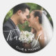 Customisez avec votre propre photo et personnalisez avec vos noms dans le texte blanc classique et élégant script merci de créer votre propre autocollant de remerciement unique. Conçu par Thisisnotme©