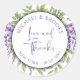 Sticker Rond Merci Élégant violet Floral Script Mariage