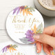 Autocollants Merci personnalisés avec une typographie dorée élégante et un beau feuillage d'automne. Les délicates feuilles d'automne sont dans des couleurs automnales de vert, orange et violet. Un design saisonnier coloré pour toute occasion - veuillez parcourir ma boutique - collection October Leaves - pour des invitations et une décoration de jour de l'événement assorties.