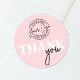 Autocollant Rond de Remerciement pour Maquilleur Moderne. Cet autocollant rond chic présente votre logo en haut, avec « Merci » affiché en bas dans une combinaison élégante de polices serif blanches et script noires pour un look moderne et soigné. Le fond est un rose pâle tendre mais peut être changé en n'importe quelle couleur pour correspondre à votre marque. Parfait pour ajouter une touche professionnelle et personnalisée à vos emballages ou cadeaux.