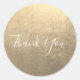 Vous pouvez customiser la taille de police des autres formes autocollantes. Créez votre propre mariage personnalisé merci autocollants. L'arrière - plan de feuille d'or en platine métallique est une photo qui peut être customisée ou remplacée par votre propre image. Vous pouvez également modifier la face de police de la calligraphie d'écriture courante avec un autre style de script. Déplacez le message de remerciement sur une ligne si vous souhaitez ajouter le nom et la date anniversaire de la mariée et du marié ou d'autres informations sur l'événement. Des autocollants dorés.