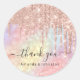Sticker Rond Merci Nom Mariage Parties scintillant Rose Hologra