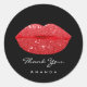 Sticker Rond Merci Nom Sweet16th Mariage Noir Rouge Baiser Lèvr