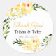 Sticker Rond Merci, Noms et Date Jaune Fleurs W/C Mariage