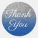 Sticker Rond Merci Parties scintillant en argent Faux Bleu prof