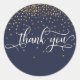 Sticker Rond Merci Script, Gold Confetti sur Midnight Blue