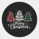 Sticker Rond Merry Christmas Tree Buffalo Plaid Red White Green