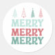 Sticker Rond Merry Merry Merry with Pastel Boho Christmas Trees