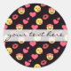 Sticker Rond mignon émotion douce amour coeur baiser lèvres mot