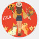 Belle fille tenant des tournesols Chat & Chien Classic Round Sticker