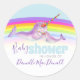Sticker Rond Mignonne narval mère et bébé baby shower arc-en-ci