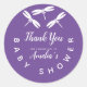 Sticker Rond Mignons libellules violet Baby shower Merci Cla