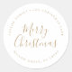 Ces stickers d'adresse de retour circulaire de Joyeux Noël en or minimaliste sont parfaits pour une simple carte de vacances ou une enveloppe d'invitation. Le design est composé d'une typographie classique en or et blanc, associée à une police de caractères rustique mais élégante, au style à la main.