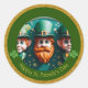 Leprechaun miniature en 3D + "Bonne Saint Patrick" en cercle vert. Conception sur autocollant rond.
