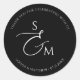 Sticker Rond Minimalist Script Monogram Wedding Black