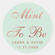 Le mariage privilégie l'autocollant pour un thème de couleur mariage or menthe et rose. L'arrière - plan est de couleur vert menthe. Les mots "Mint To Be" sont écrits en (faux) feuille d'or rose, dans un élégant script calligraphique. Sous eux, les noms et la date sont écrits en petits casquette, dans une couleur similaire.
