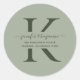Sticker Rond Modern Sage Green Script Monogramme Adresse de ret
