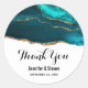 Mariage merci autocollants avec un style abstrait. Illustration de la pierre d'agate turquoise avec des couches de nuances variées. Un faux ruban de parties scintillant d'or court entre les couches de couleur. Design moderne et élégant.