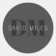 Sticker Rond Moderne gris foncé et noir Nom et monogramme modif