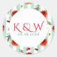 Elégante bande moderne vert menthe doux et blanc avec des pavots rouges imperméable motif illustration. Modèle autocollant mariage personnalisable