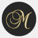 Monogramme M, script élégant, couleur or sur arrière - plan noir.