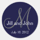 Sticker Rond Monogramme bleu marine Mariage mariée Groom Date S