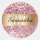 Créez votre propre autocollant rond classique avec une parties scintillant de style chunky à confetti rose brillant, jumelée à une bande de papier métallique brossée en or brillant pour le monogramme. Le monogramme noir et blanc et le prénom sont dotés d'un script de calligraphie moderne qui peut être customisé. Certaines lettres devront être déplacées vers le centre avec cette belle calligraphie. La bande et la parties scintillant de faux film de luxe sont numériquement images créées qui s'impriment comme une photo.