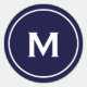 Sticker Rond Monogramme classique simple bleu marine blanc