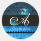 STICKER ROND MONOGRAMME DE DAMASK EN SAPHIRE NOIR ET BLEU,