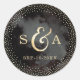 Calligraphie à la main monogramme design et points or glamor confetti sur le noir foncé ciel nuit aquarelle arrière - plan, effet parties scintillant faux or brillant, moderne, propre et élégant, parfait pour mariage vintage ou mariage d'hiver en soirée. Personnalisez votre autocollant monogrammed pour ajouter une touche personnelle à votre mariage ! Voir toutes les pièces correspondantes dans la collection ci-dessous.