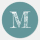 Sticker Rond Monogramme de script moderne Turquoise initial