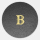 Sticker Rond Monogramme en cuir noir Faux personnalisé